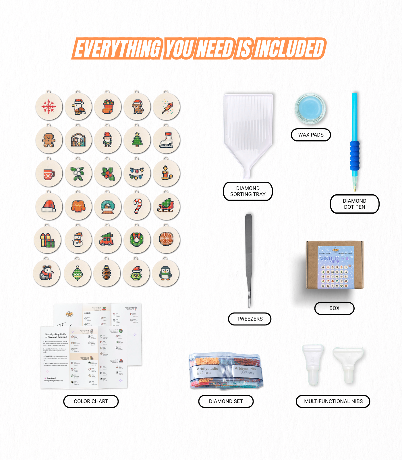 Diamond Painting Ornament Kit – Winter Spark Minis (Set of 30)